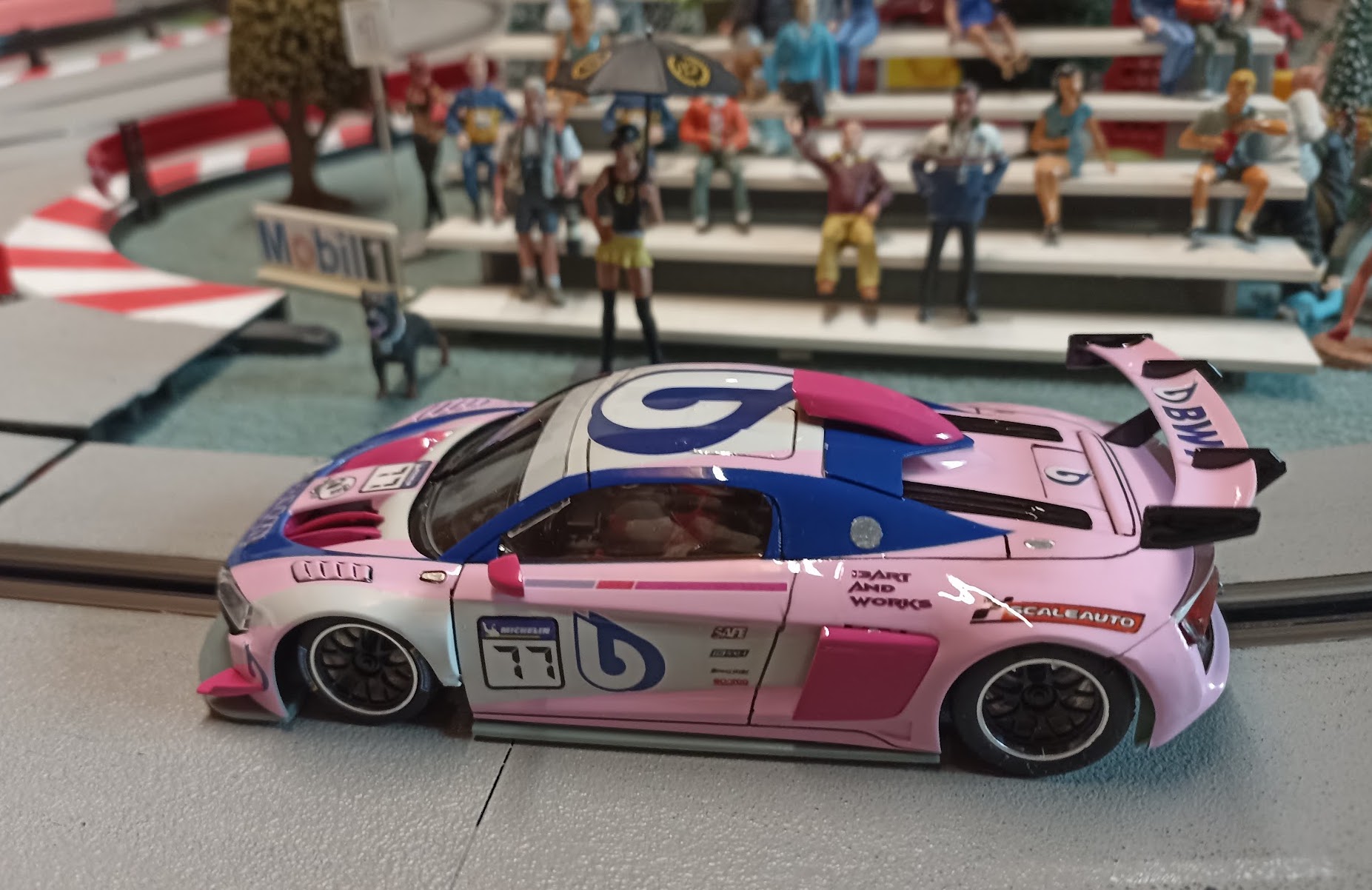 Scaleauto a récemment sorti une nouvelle Audi R8 en GT. Pour se différencier un peu des autres marques qui ont déjà fait des R8 (NSR, Slot.It par ex.) ils ont cette fois choisi la version GT2 qui est un peu différente. C’est pas plus mal !