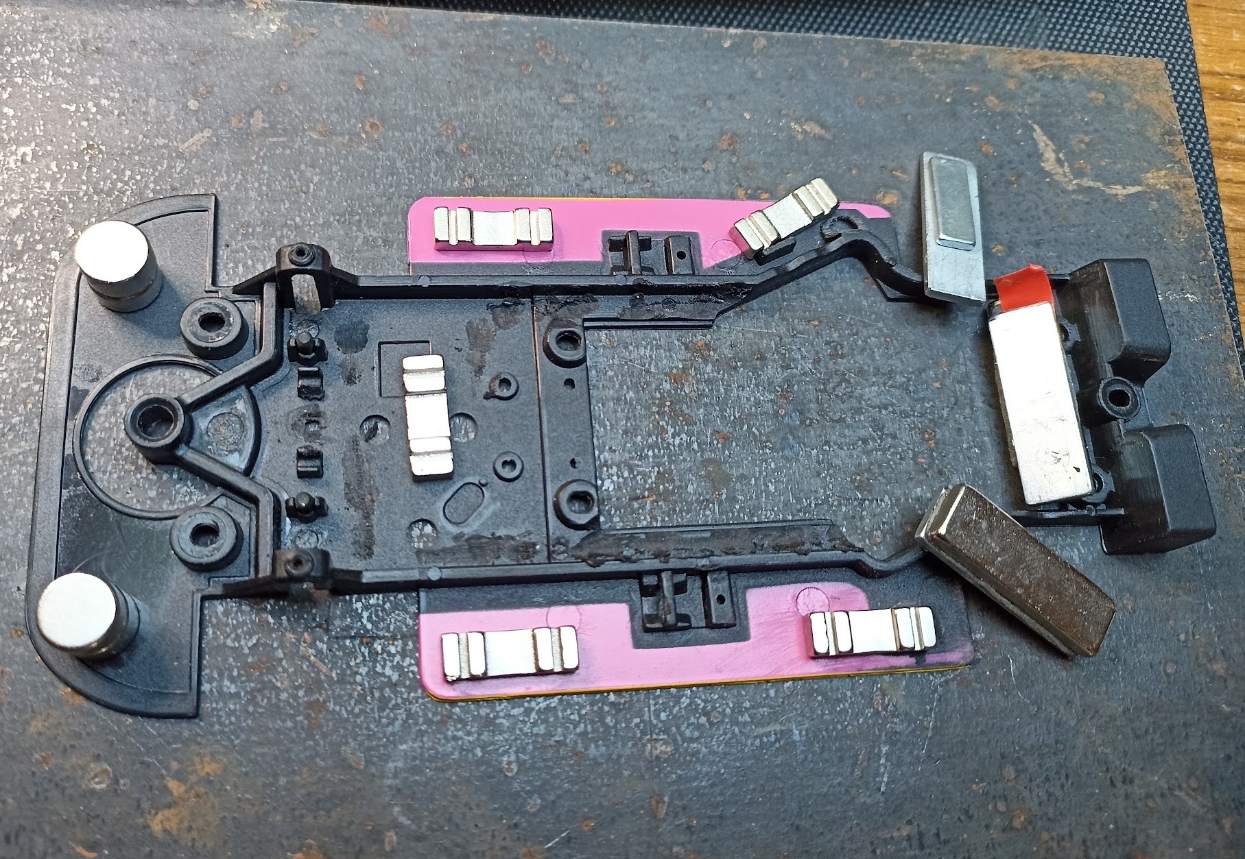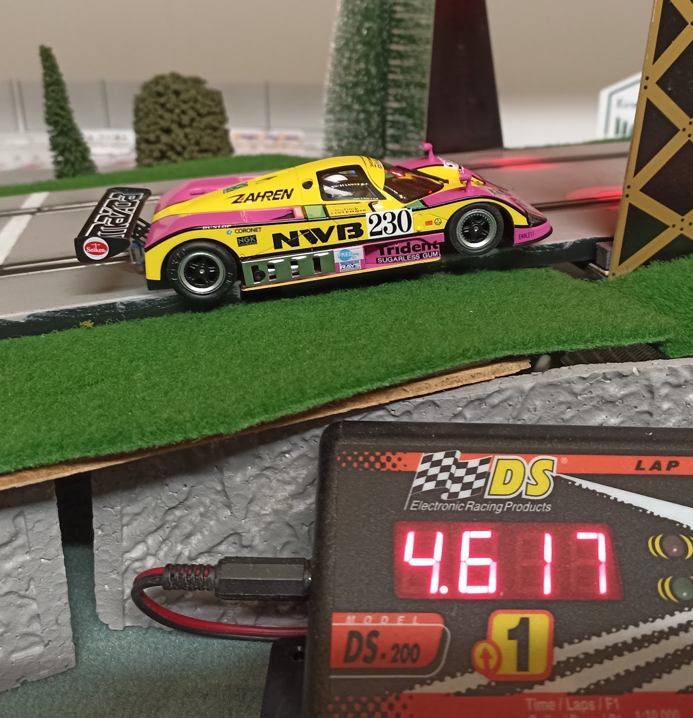 Cette fois je n’ai pas été convaincu par les pneus Slot.It P6B. Les chronos restaient assez moyens et la voiture avait un comportement douteux.