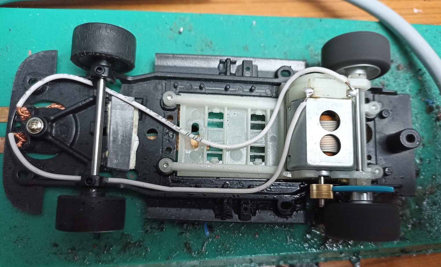 Avec ce support, il fallait des roues un peu plus grosses, j’ai mis des Sloting Plus que j’avais en stok.