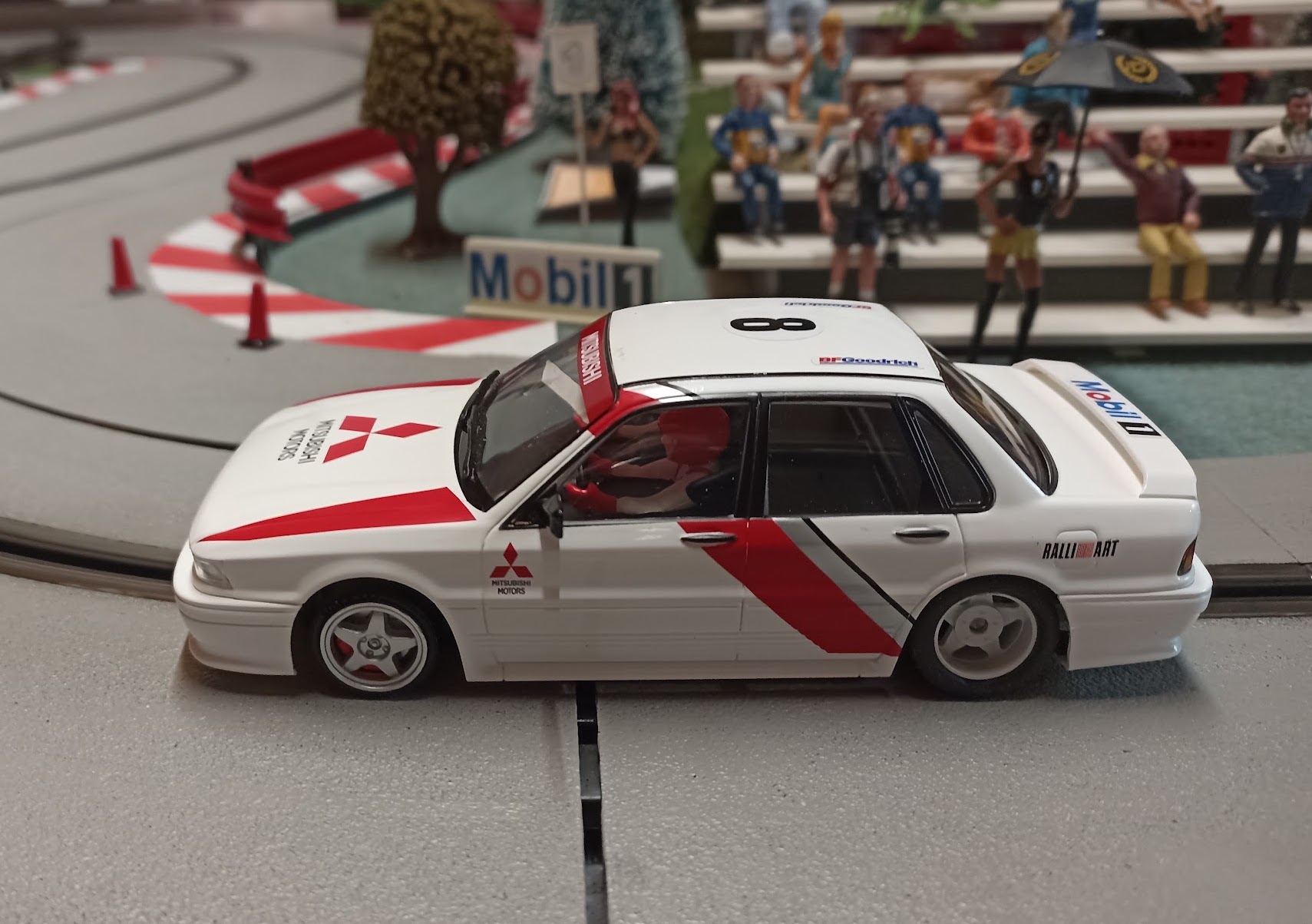 Avec ces modifications , la Mitsubishi Galant est très plaisante en piste et même très performante ! Le moteur est puissant (un peu trop, un 17.000 aurait suffit), et il a du frein.