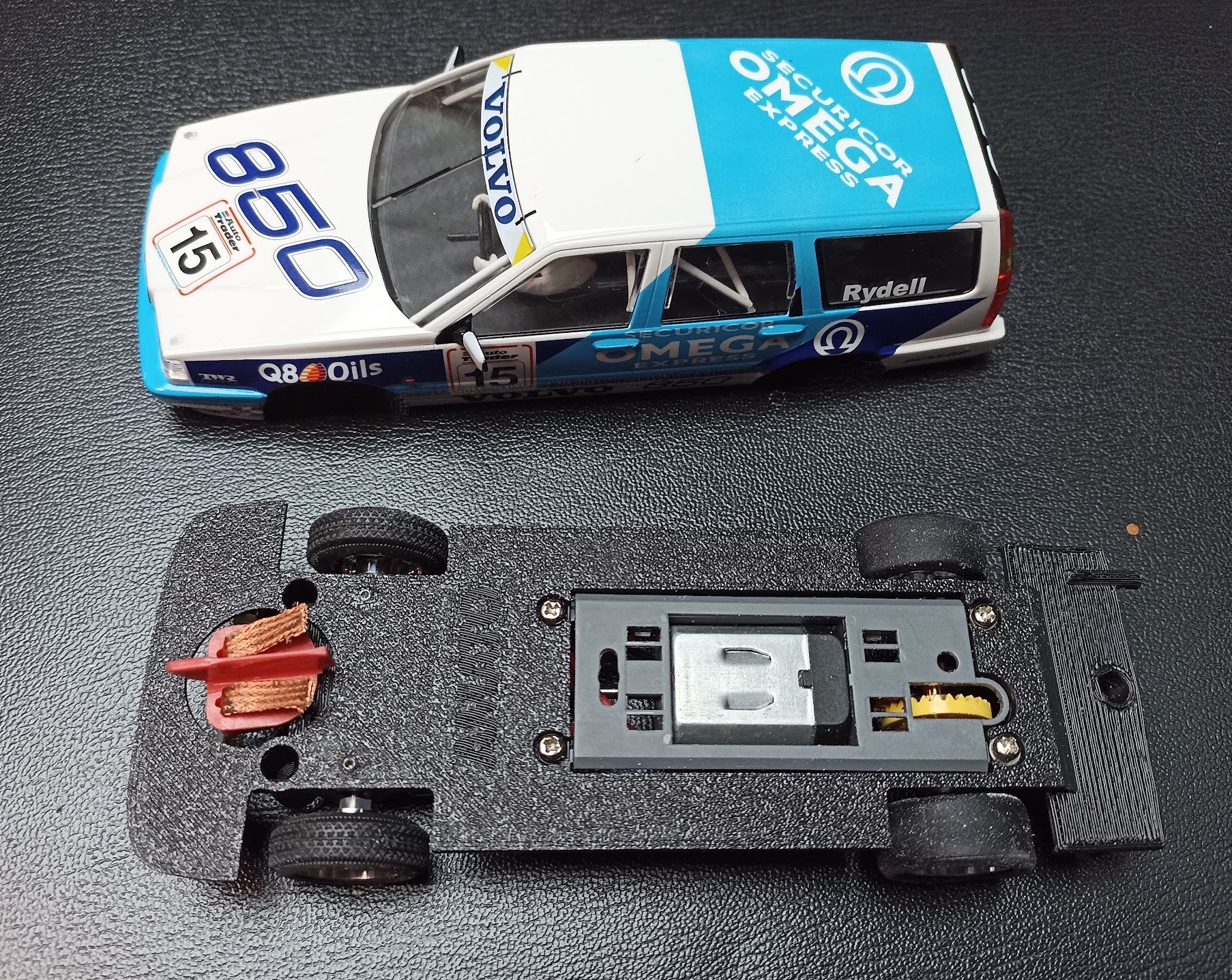 Le châssis est très bien conçu et s’adapte parfaitement. A l’avant la carrosserie repose dessus ce qui va permettre un meilleur tilting avec des vis métriques.