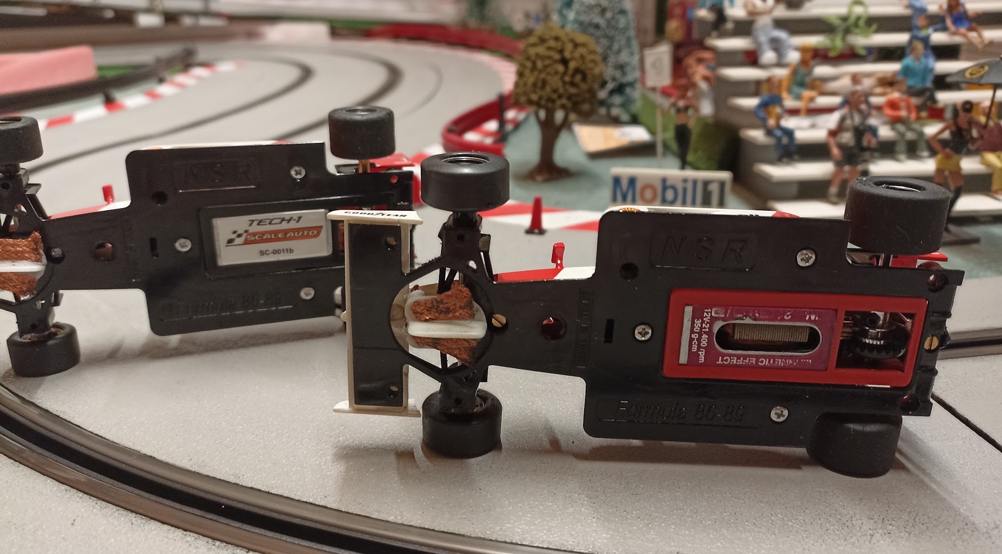 Petit retour sur les F1 génériques de NSR, je vous avais déjà montré la McLaren Honda n. 1 ici, depuis elle a été préparée comme les autres, c’est à dire avec un moteur Scaleauto non magnétique (SC-011) et surtout des pneus spéciaux NSR vendus collés et tournés sur jantes.