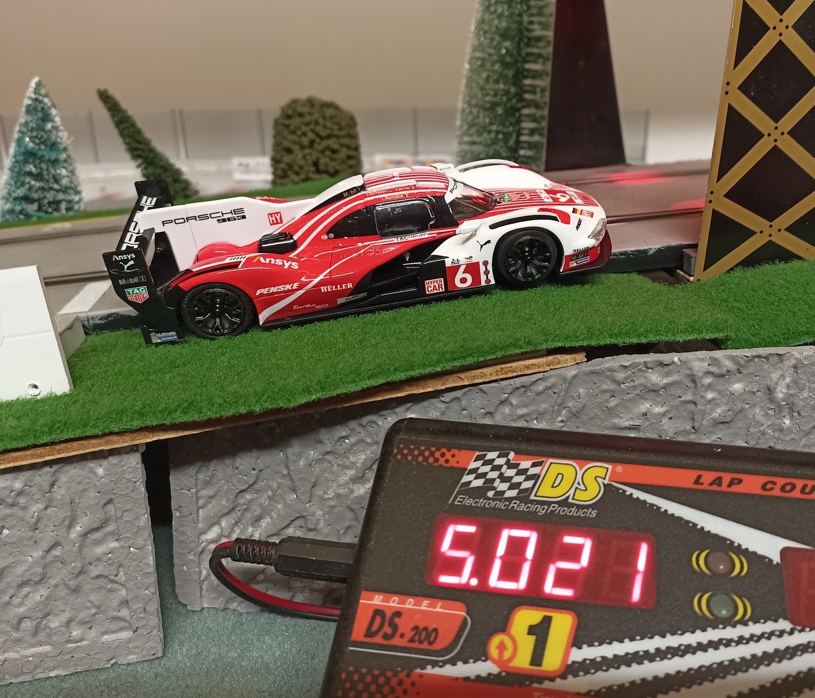 Eh oui, j’ai aussi acheté une Hypercar Scalextric, j’avais déjà hésité avec la Cadillac, mais cette Porsche 963 dans cette déco rouge et blanche m’a fait craquer ! J’avais envie de voir ce que ça pouvait donner en piste.